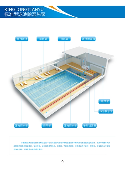 1、游泳館的設(shè)計是一項復(fù)雜的工作,需要認(rèn)真考慮能耗、舒適度、健康和安全等方面的問題。泳池里的熱、濕和化學(xué)物質(zhì)結(jié)合在一起,形成了對建筑和設(shè)備不利的惡劣環(huán)境。游泳館設(shè)計有很多重要的考慮因素,相對濕度水平、冷凝、空氣溫度、池水溫、空氣分布、室外空氣、排氣空氣、池水處理和氯胺控制都是必須要考慮到,泳池恒溫除濕系統(tǒng)設(shè)計的目的是綜合考慮好以上設(shè)計因素,提供一個安全、健康和舒適的泳池環(huán)境,同時將運營成本降到最低,并提供盡可能好的空氣質(zhì)量。